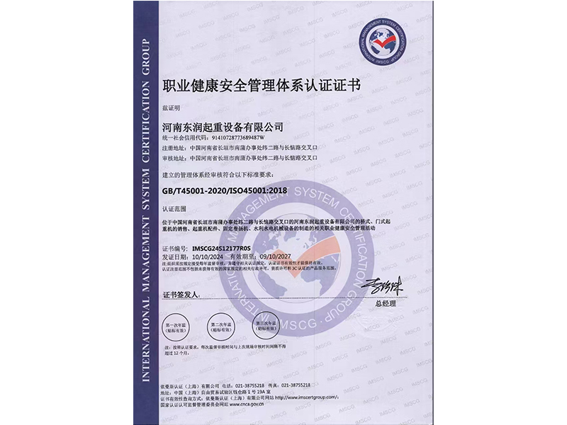 職業(yè)健康安全管理體系認(rèn)證證書(shū)